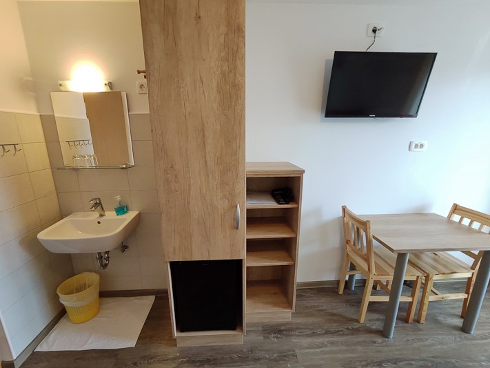 Oprema: TV, hladilnik, balkon, umivalnik s toplo in hladno vodo